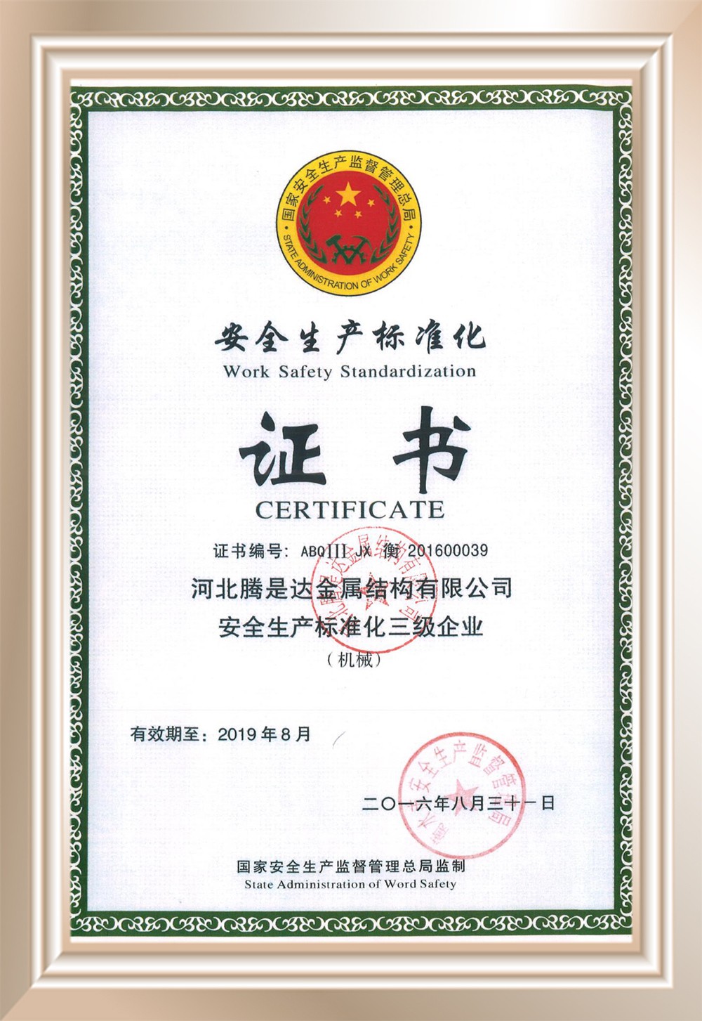 认证证书